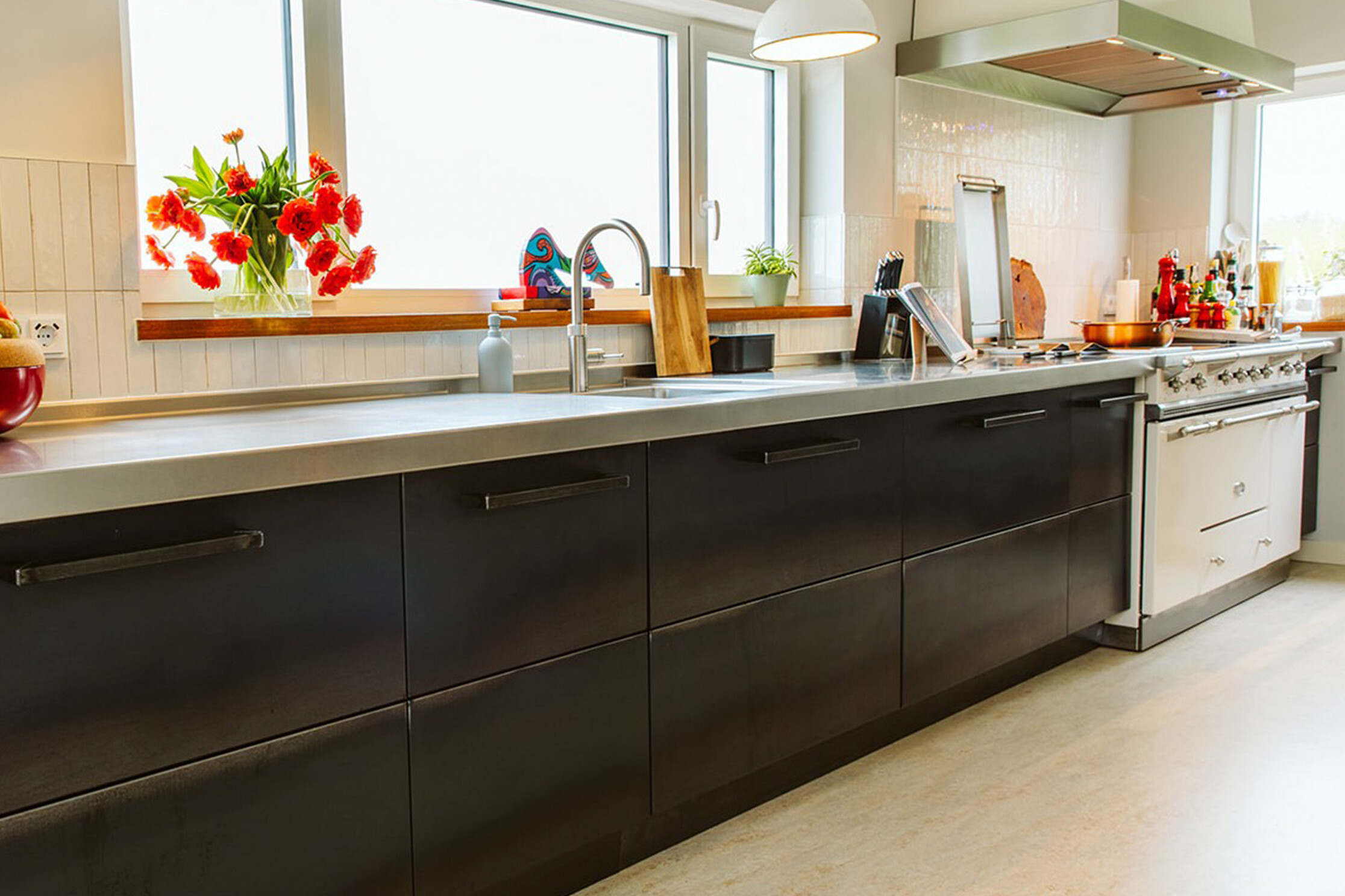 Voor een particulier project in Fijnaart ontwierpen en realiseerden we, onder ons label Ferro Design Keukens, een robuuste leefkeuken van blauwstaal. De klant had al een bijzonder fornuis op het oog; wij bouwden daar de rest van de keuken omheen. Alles is maatwerk, bedacht en gemaakt door het team van IHG.